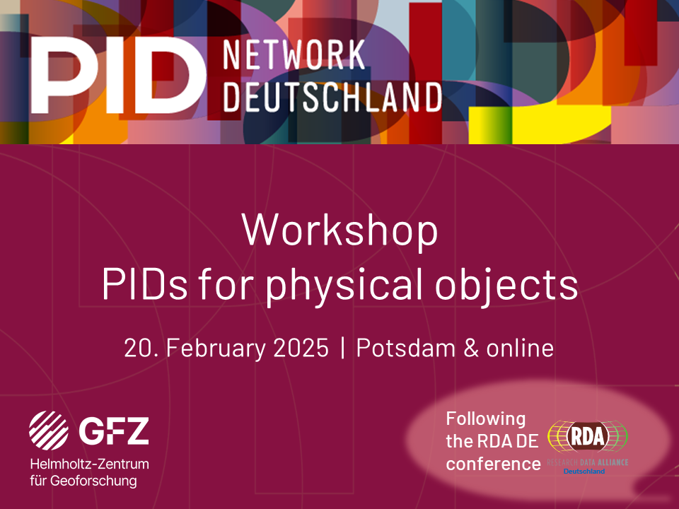 The “PID Network Germany” project held a workshop on “PIDs for physical objects” at the Helmholtz Centre for Geosciences on February 20, 2025. A hybrid streaming of the presentations was possible. 30 participants came to Potsdam's Telegrafenberg (despite the rail strike), 70 others took part online.
